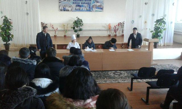 Toshkent viloyati Kasbiy ta’limni rivojlantirish va muvofiqlashtirish hududiy boshqarmasi tasarrufidagi kasb-hunar kollejlarida “Biz yoshlar sog‘lom turmush tarafdorimiz” shiori ostida “OITS — umr zavoli” mavzusida davra suhbatlari o‘tkazilmoqda.