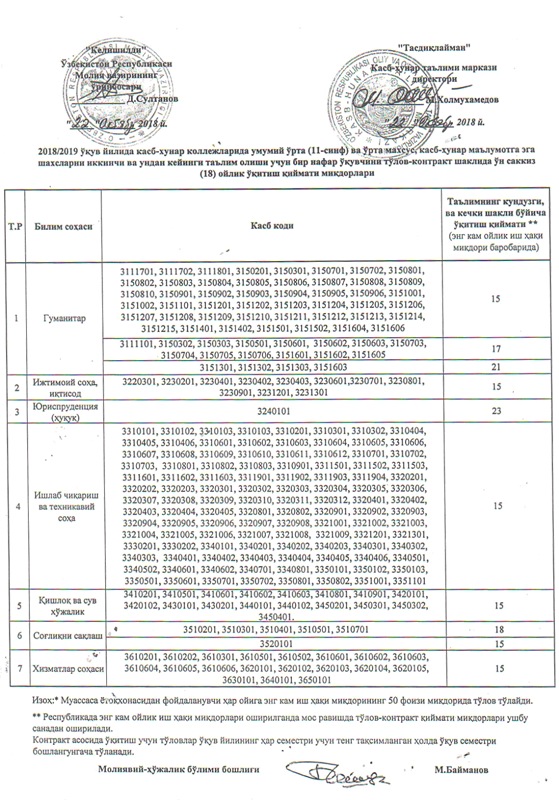11-Sinf negizida kontrakt to’lovlari