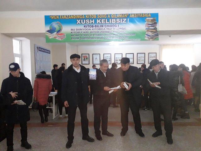Joriy yilning 6-dekabrda Angren kimyo sanoati kasb-hunar kollejida «Farzandimga kitob sovga qilaman» aksiyasi o’tkazildi. Tashrif buyurgan ota-onalarga va kollej o’quvchilariga faollar zalida asosiy Qomusimiz Konstitutsiyamizning qabul qilinganligini 27-yilligi munosabati bilan tadbir tashkil qilindi. Tadbirda Angren shahar 4 sektor ishchi guruh ish yurituvchisi Pusurmonov Sayfuddin Ashurboyevich ishtirok etdi.