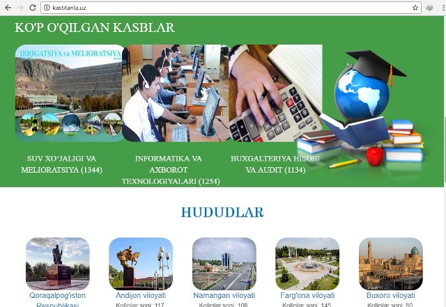Kasblar va mutaxasisliklar ro’yhati