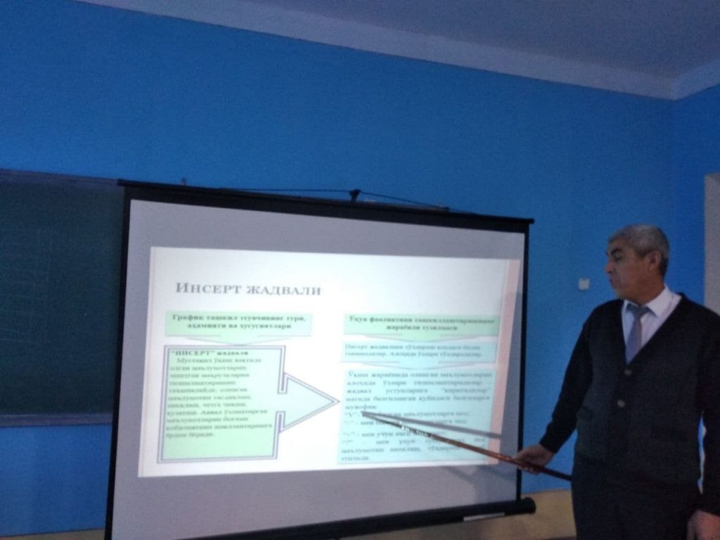 Kasb-hunar maktabi uslubchisi K.J.Karimov o’qituvchillarga dars jarayoniga innovatsion texnologiyalarni to’g’ri qo’llanilish bo`icha taqdimot o`tkazdi.