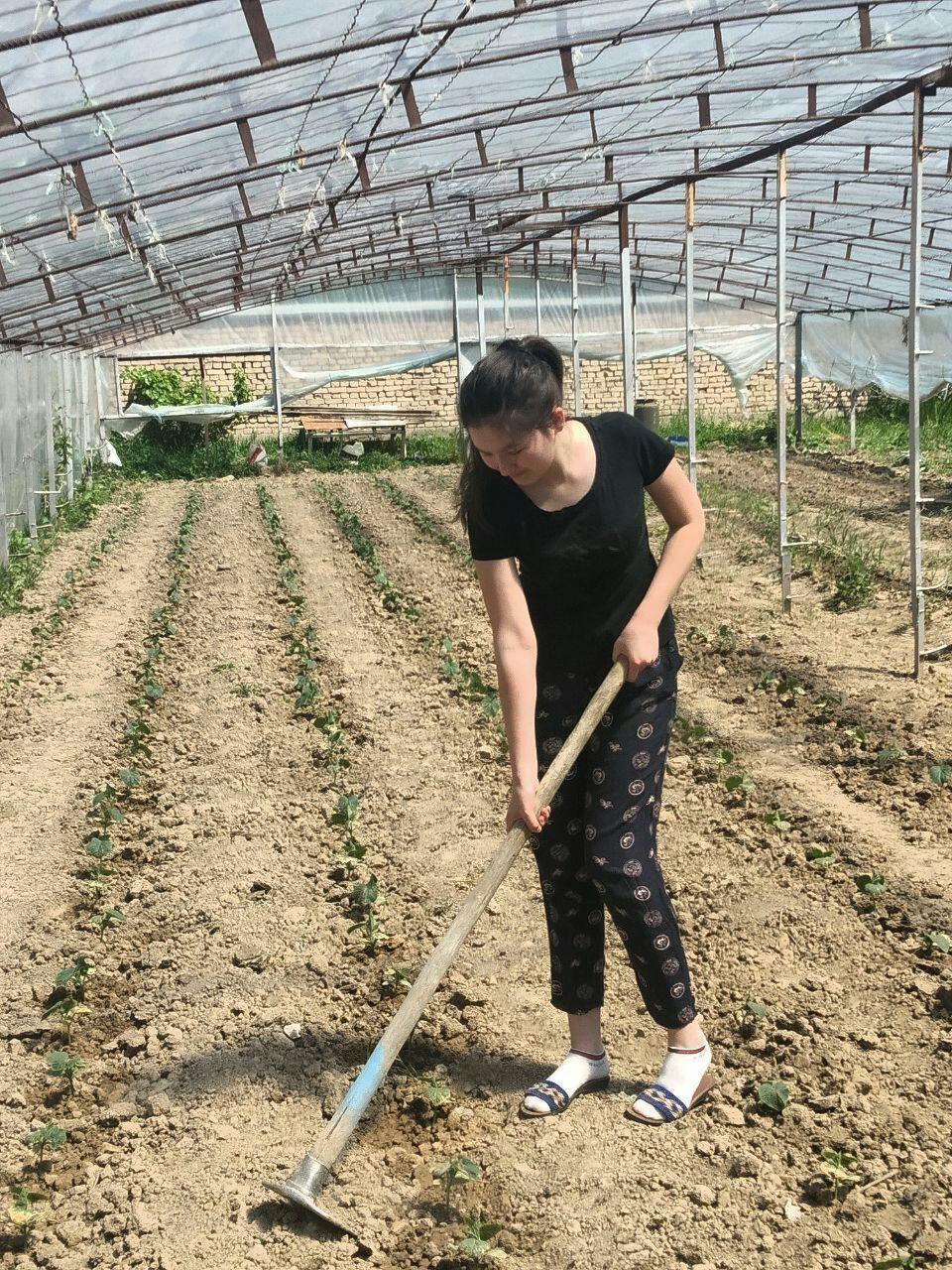 Fotolavxada: Chirchiq tibbiyot kolleji o‘quvchilari o‘zlarining tomorqalarida mehnat qilmoqdalar.