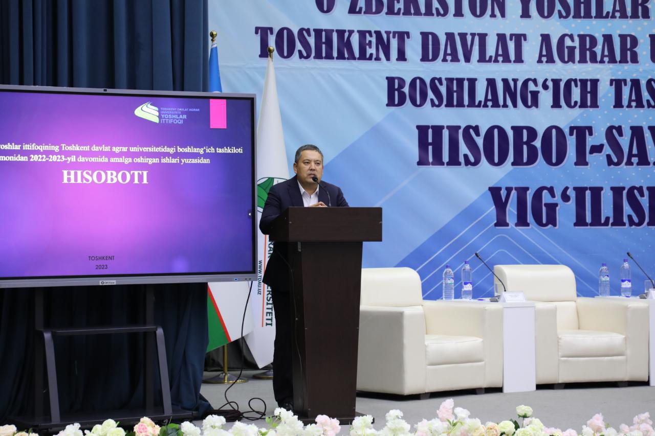 19-sentyabr kuni, Toshkent davlat agrar universitetida O’zbekiston Yoshlar ittifoqi boshlang’ich tashkiloti tomonidan 2022/2023-yil davomida amalga oshirilgan ishlar yuzasidan hisobot-saylov yig’ilishi bo’lib o’tdi.