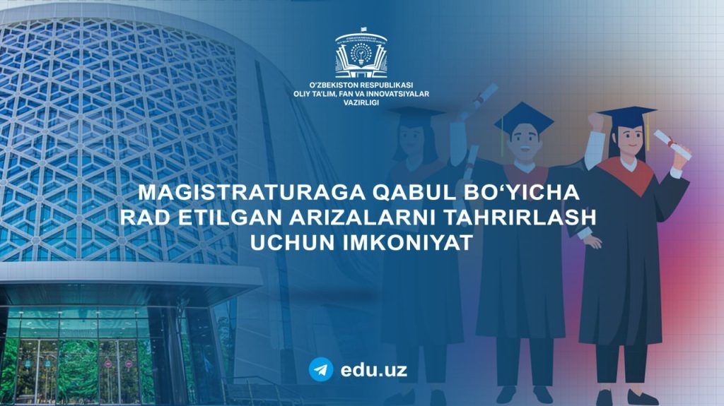 11–12-avgust kunlari magistraturaga qabul boʻyicha rad etilgan arizalarni tahrirlash mumkin
