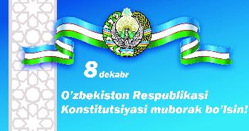 Oliy va professional ta’lim barcha xodimlarni, butun xalqimizni 8 dekabr –Oʻzbekiston Respublikasining Konstitutsiyasining 32 yillik bayrami bilan samimiy muborakbod etamiz!