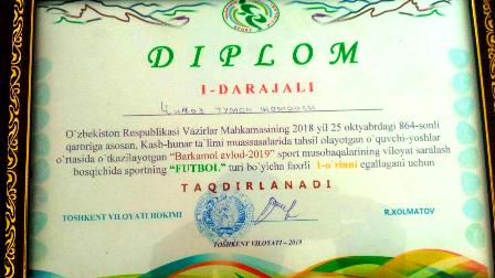 «Barkamol avlod-2019» sport musobaqalarining viloyat saralash bosqichida sportning «Futbol» turi bo’yicha musobaqa natijalari.