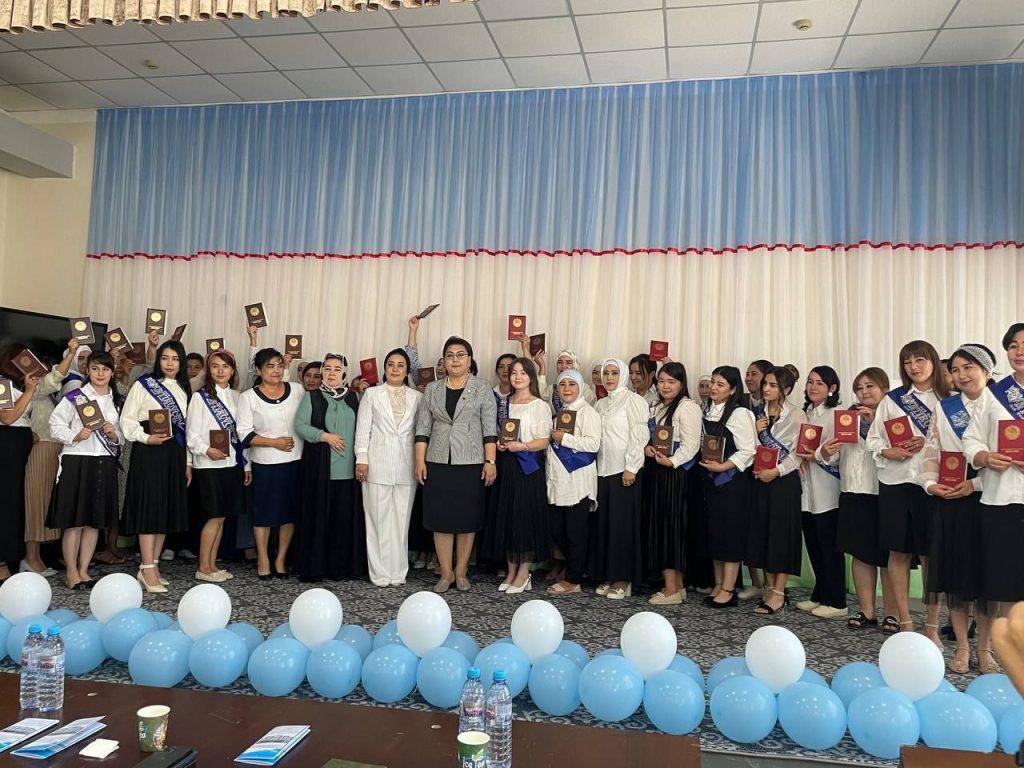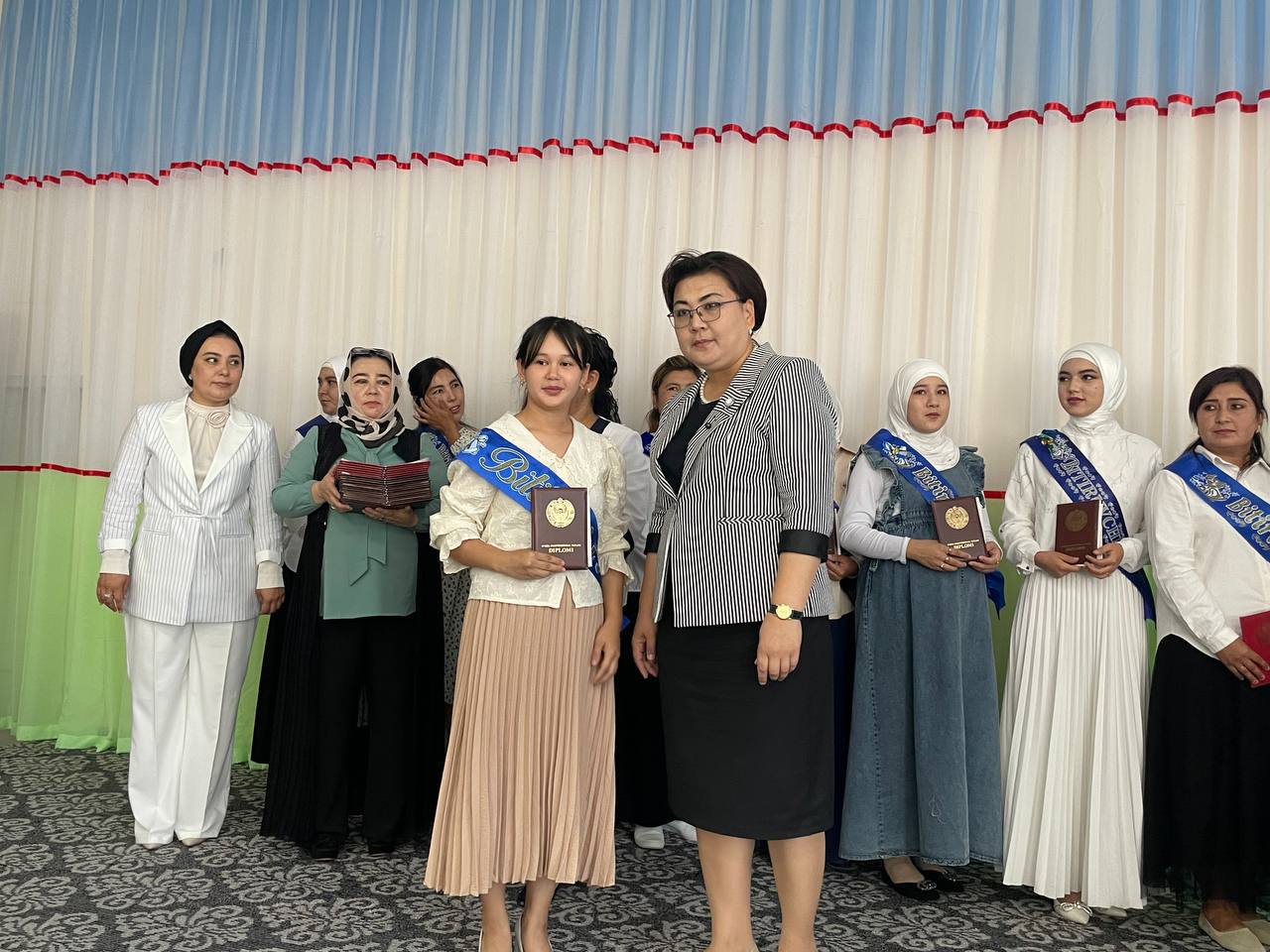 Битирувчиларга дипломни Тошкент вилояти Олий таълим, фан ва инновациялар бошқармаси бошлиғи Кулбекова Насиба Закировна топширар экан, хар бир ёшга жамиятда ўзини муносиб ўрнини топишда уларга муваффақиятлар тилади.