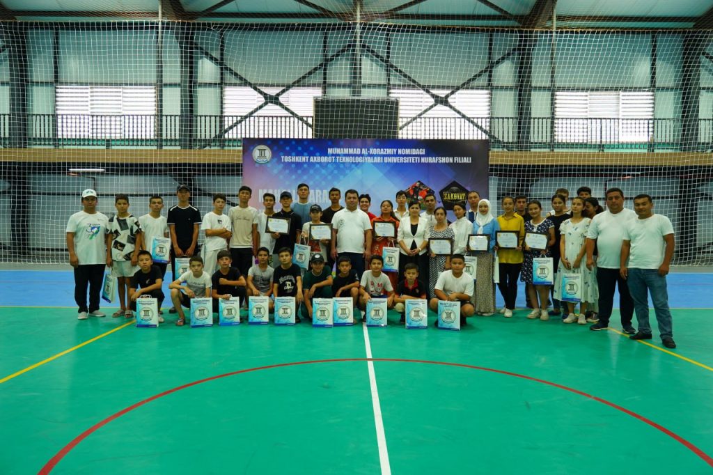 “Yoz mavsumida mahalla yoshlarining bo‘sh vaqtini mazmunli tashkil etish to‘g‘risida”gi 2024-yil 15-iyuldagi 26-Q/Q-sonli qo‘shma qaror ijrosini ta’minlash maqsadida Muhammad al-Xorazmiy nomidagi TATU Nurafshon filiali tashabbusi bilan joriy yilning 1 avgust kuni Nurafshon shahrining mahalla yoshlari o‘rtasida intellektual, sport musobaqalari ya’ni, zakovat intellektual o‘yini, shaxmat-shashka, mini futbol, basketbol sport turlari bo‘yicha “Biz bir bo‘lsak yagona xalqmiz — birlashsak Vatanmiz!” deb nomlangan madaniy va sport tadbiri bo‘lib o‘tdi. Tadbirda filial jamoasi, Yoshlar ishlari agentligi Nurafshon bo‘limi, yoshlar yetakchilari va mahalla yoshlari ishtirok etdilar.