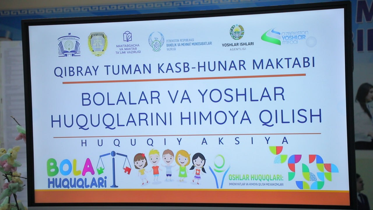 Qibray tumani Kab-hunar maktabida, tuman Yuridik xizmat ko‘rsatish markazi, Maktabgacha va maktab bo‘limi, Yoshlar ishlari agentligi va Kambag‘allikni qisqartirish va bandlikka ko‘maklashish tuman bo‘limi hamkorligida «Bolalar va yoshlarning huquqlarini himoya qilish» mavzusida huquqiy aksiya o’tkazildi.