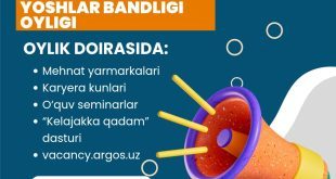 Kasbiy ta‘lim agentligi tomonidan «Kasb tanla – kelajagingni yarat!“ shiori ostida «Kasbga Sayohat” – Ko‘chma Kasb tashviqoti loyihasi – Respublika kasb festivali tashkil etiladi. ➖ Bundan ko‘zlangan maqsad — yoshlar, xususan maktab o‘quvchilari orasida kasb-hunarga bo‘lgan qiziqishni oshirish, zamonaviy va an’anaviy kasblarni interfaol usulda targ’ib qilishdan iborat. Loyiha doirasida maxsus dizayndagi ko‘chma avtobuslar tayyorlanadi. Har bir avtobus ichida: ➖kasblar bo‘yicha …