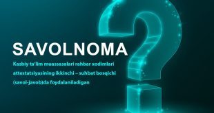 BatafsilKasbiy ta’lim muassasalari rahbar xodimlari attestatsiyasining ikkinchi – suhbat bosqichi (savol-javob)da foydalaniladigan savolnoma e’lon qilinmoqda