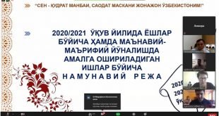 Ўзбекистон Республикаси Олий ва ўрта махсус таълим вазирлиги томонидан 2020 йил 20 август куни янги ташкил этилган профессионал таълими тизими раҳбарларига «Профессионал таълим муассасаларида ёшлар билан ишлаш ва маънавий-маърифий йўналишда амалга ошириладиган намунавий ишлар режаси тақдимоти» мавзусида масофавий ZOOM дастури орқали вебинар ўтказилди. Вебинарда «2020/2021 ўқув йилида ёшлар бўйича ҳамда маънавий-маърифий йўналишда амалга ошириладиган ишлар бўйича …