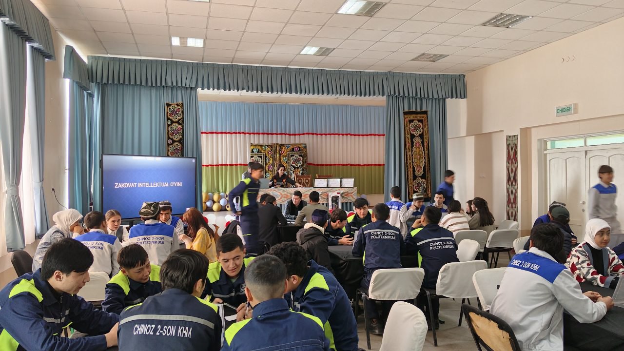 Oʻquvchilar oʻrtasida bilim salohiyatlarini sinab koʻrish hamda «Zakovat» intellektual oʻyinini keng miqyosda shakillantirish maqsadida joriy yilning 27-fevral kuni Chinoz tuman 2-son politexnikumida “Zakovat” intellektual o‘yini tashkil etildi.