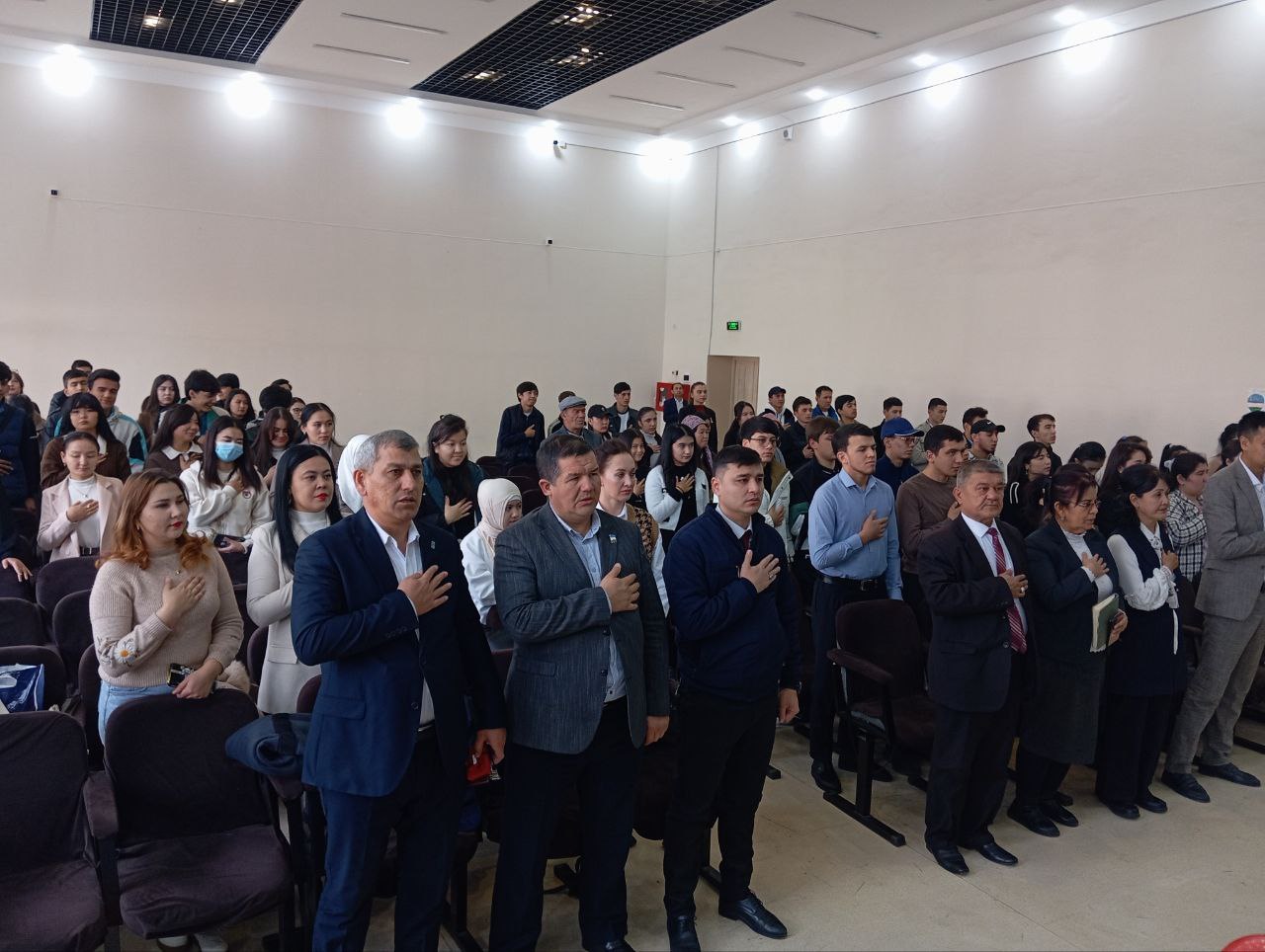 Университетнинг юристи  О. Муталов Давлат байроғи куни ҳақида гапириб бердилар.