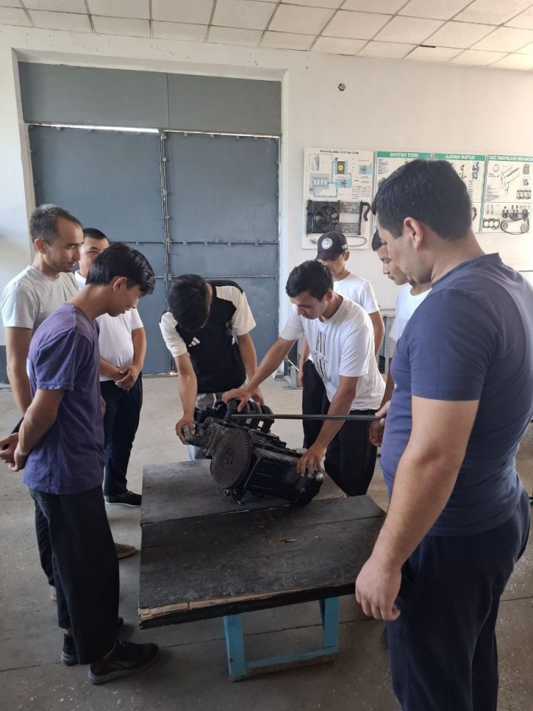 Shulardan biri — “Avtomobil tuzilishi” fanidan “Mashina ustaxonasi” nomli amaliy mashg‘ulot bo‘lib, unda ishtirokchilar avtomobil qismlarining tuzilishi va ishlash prinsiplari bilan tanishib, amaliy ko‘nikmalarini mustahkamlashdi.