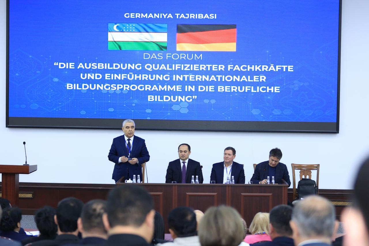 Forum davomida Prezidentning 158-son Farmoniga muvofiq kasbiy ta’lim tizimida malakali kadrlarni tayyorlash hamda xalqaro ta’lim dasturlarini joriy qilish bo‘yicha Germaniyaning “AVESTOS” GmbH kompaniyasi bilan hamkorlikda amalga oshirilayotgan ishlar tahlil qilinib, loyihani yanada kengaytirish imkoniyatlari muhokama qilindi.