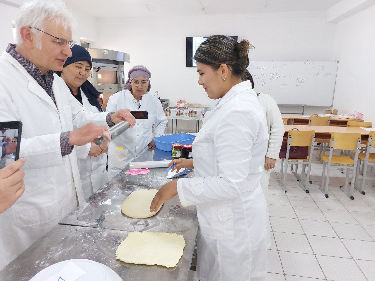 08-aprel kuni Toshkent viloyati Yangiyo’l Agrotexnologiyalar texnikumida Germaniya xalqaro jamiyati (GIZ) PECA Loyihasi eksperti janob G.Linster «Non, non mahsulotlari, qandolat va makaron ishlab chiqarish texnologiyasi» mutaxassisligi o’qituvchi va ishlab chiqarish ta’limi ustalariga loyixa doirasidagi o’quv dasturlari asosida bugungi darsda qandolat mahsulotlarini tayyorlash texnologiyasi mahorat darslari o’tkazdi.