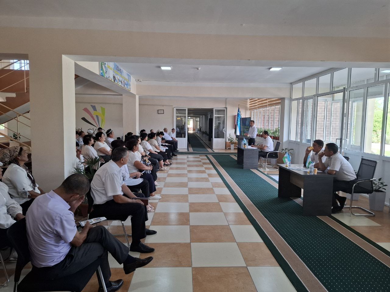 Toshkent viloyati Oliy ta`lim, fan va innovatsiyalar boshqarmasini bosh mutaxassisi B. Mirzayev hamda Yangiyo‘l tuman 2-son kasb-hunar maktabi direktori N. Xudoyberdiyevlar Avgust Kengashi ishtirokchilarini yangi 2024/2025-o’quv yilining boshlanishi bilan tabriklab, o‘qitishning zamonaviy va interfaol metodlarini joriy etishda axborot texnologiyalaridan foydalanish bo’yicha tegishli ko‘rsatma va tavsiyalar berdilar.