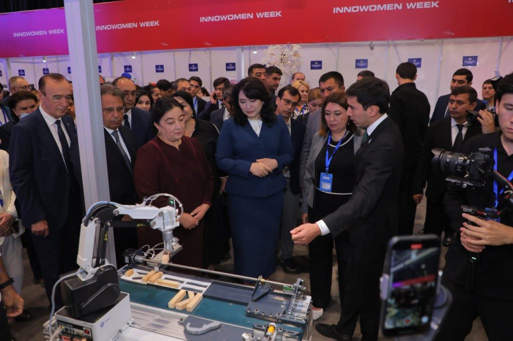 “Chegarasiz gʻoyalar” shiori ostida oʻtkazilayotgan “InnoWeek–2025” innovatsion gʻoyalar xalqaro haftaligining ochilish marosimida Oʻzbekiston Respublikasi Prezidenti Administratsiyasi rahbarining taʼlimni isloh qilish boʻyicha oʻrinbosari X.Umarova, Oila va xotin-qizlar qoʻmitasi raisi Z.Maxkamova, Oliy taʼlim, fan va innovatsiyalar vaziri Q.Sharipov hamda vazirlik va idoralar rahbarlari, xorijiy davlatlarning diplomatik vakolatxonalari vakillari, yirik ilmiy markazlar olimlari, texnologik soha ekspertlari, startap ekotizim ishtirokchilari, yosh innovatorlar va ixtirochilar qatnashdilar.