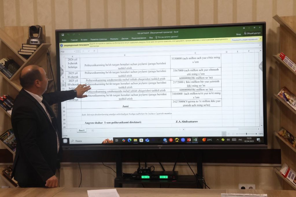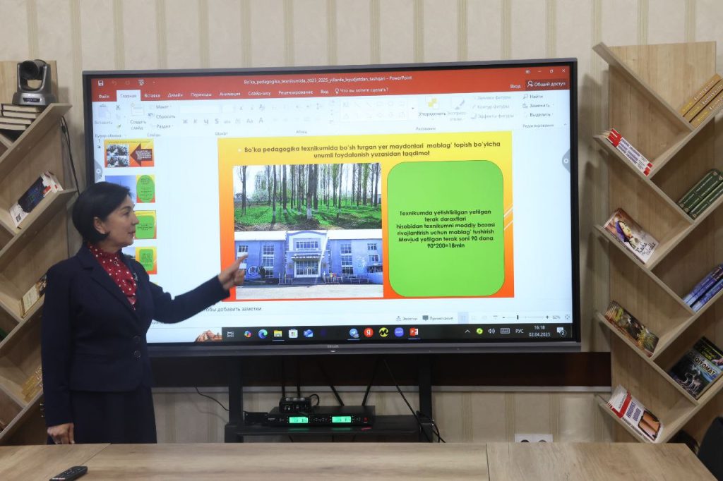 Toshkent viloyati Oliy ta’lim, fan va innovatsiyalar boshqarmasida boshqarma boshlig‘i N.Kulbekova rahbarligida viloyatdagi kasbiy ta’lim tashkilotlar direktorlari tomonidan taqdimot o‘tkazildi.