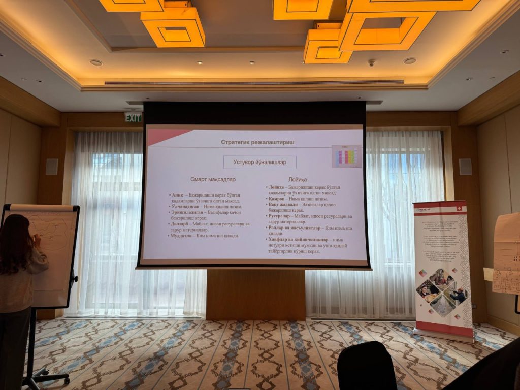 Toshkent shahridagi Hyatt Regency mehmonxonasida  “Helvetas Swiss Intercooperation”ning (Shvetsariya) Oʻzbekistondagi filiali tomonidan “Oʻzbekistonda kasbiy taʼlim islohotlarini qoʻllab quvvatlash” (VET4UZ) loyihasi doirasida joriy yilning 4-6-noyabr kunlari “Turizm sohasida oʻzini oʻzi baholash jarayonlarini joriy etish hamda taʼlim sifatni taʼminlash” mavzusida seminar-trening o’tkazilmoqda.
