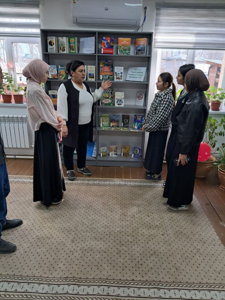 O`zbekiston Respublikasi Prezidentining 2024-yil 27-dekabrdagi “Turkiston jadidlik harakatining asoschisi, atoqli adib va jamoat arbobi, nosir va pedagog Mahmudxo`ja Behbudiy tavalludining 150-yilligini keng nishonlash to`g`risida”gi PQ-462-son Qarori, Toshkent viloyati Oliy ta`lim, fan va innovatsiyalar boshqarmasining 2025-yil 8-yanvardagi  01-12-54-son xati ijrosini ta`minlash maqsadida  16-yanvar kuni Bo`stonliq tuman 2-son politexnikumi o`quvchilari  Gazalkent shahrida joylashgan Markaziy kutubxonaga tashrif buyurdilar.