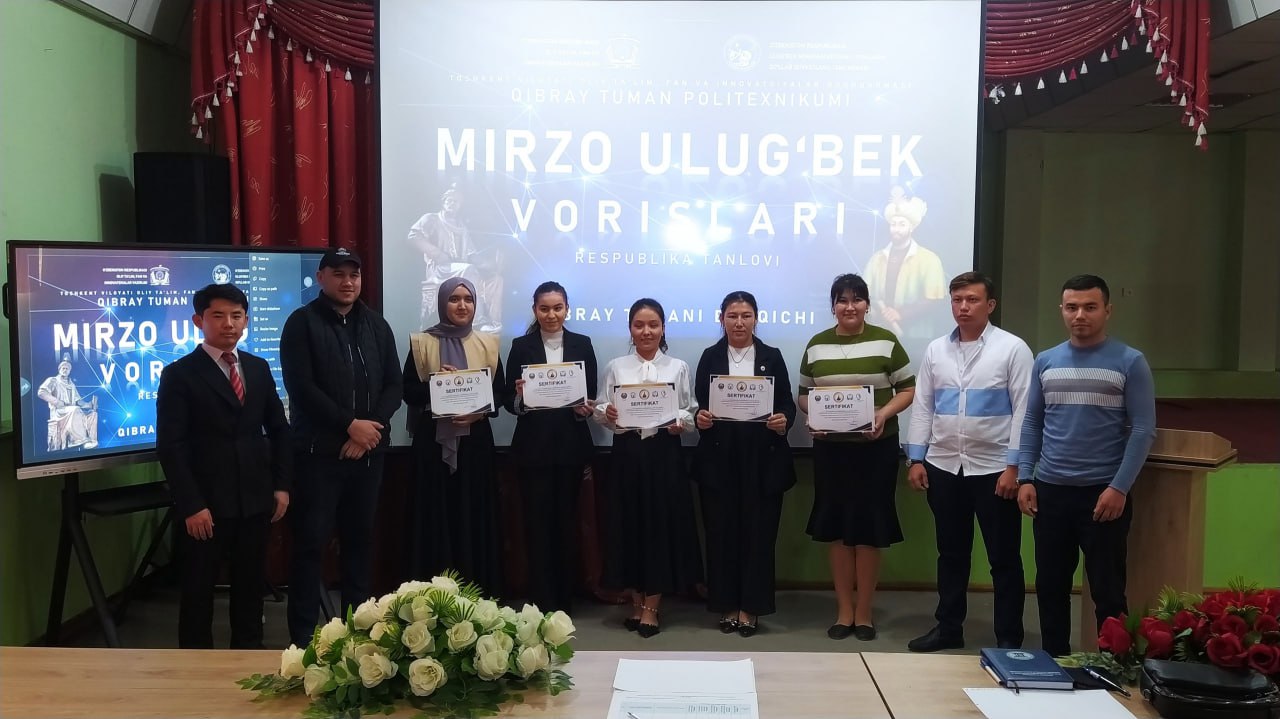 2025-yil 18-mart kuni Qibray tuman politexnikumida «Mirzo Ulug’bek vorislari» Respublika tanlovi Qibray tuman bosqichi Toshkent viloyati Oliy ta`lim, fan va innovatsiyalar boshqarmasi tomonidan o’tkazildi.