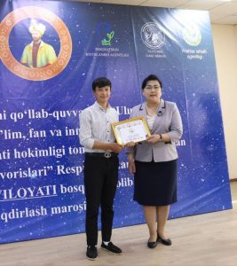 Hukumat qaroriga muvofiq, tanlov g‘oliblari bir martalik pul mukofotlari bilan rag‘batlantirildi. Mukofotlarni viloyat Oliy taʼlim, fan va innovatsiyalar boshqarmasi boshlig‘i N. Kulbekova tantanali ravishda topshirdi va ishtirokchilarga samimiy tabrik hamda ezgu tilaklarini bildirdi.