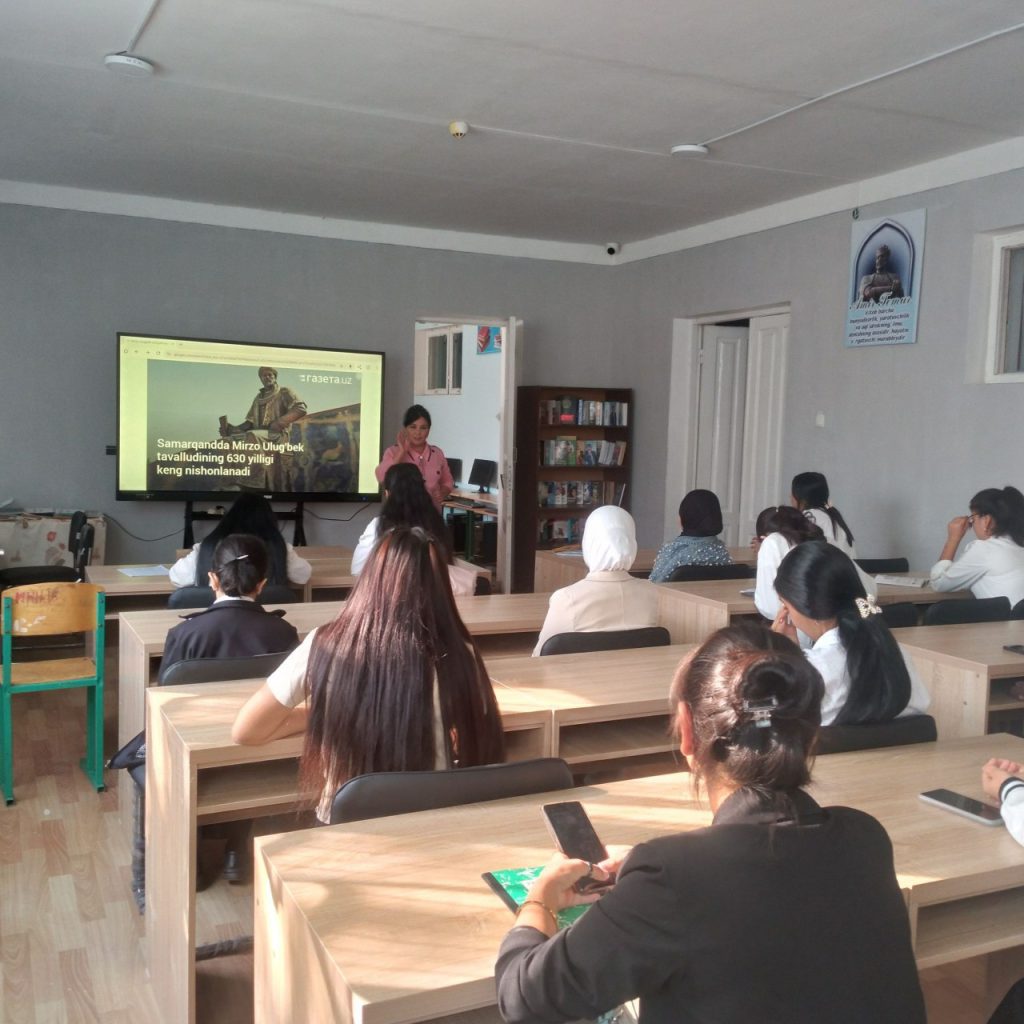 Davra suhbati qiziqarli va savol-javoblarga boy tarzda o’tkazildi. O’quvchilar buyuk davlat arbobi Mirzo Ulug’bek haqida bilimlarni boyitdilar.