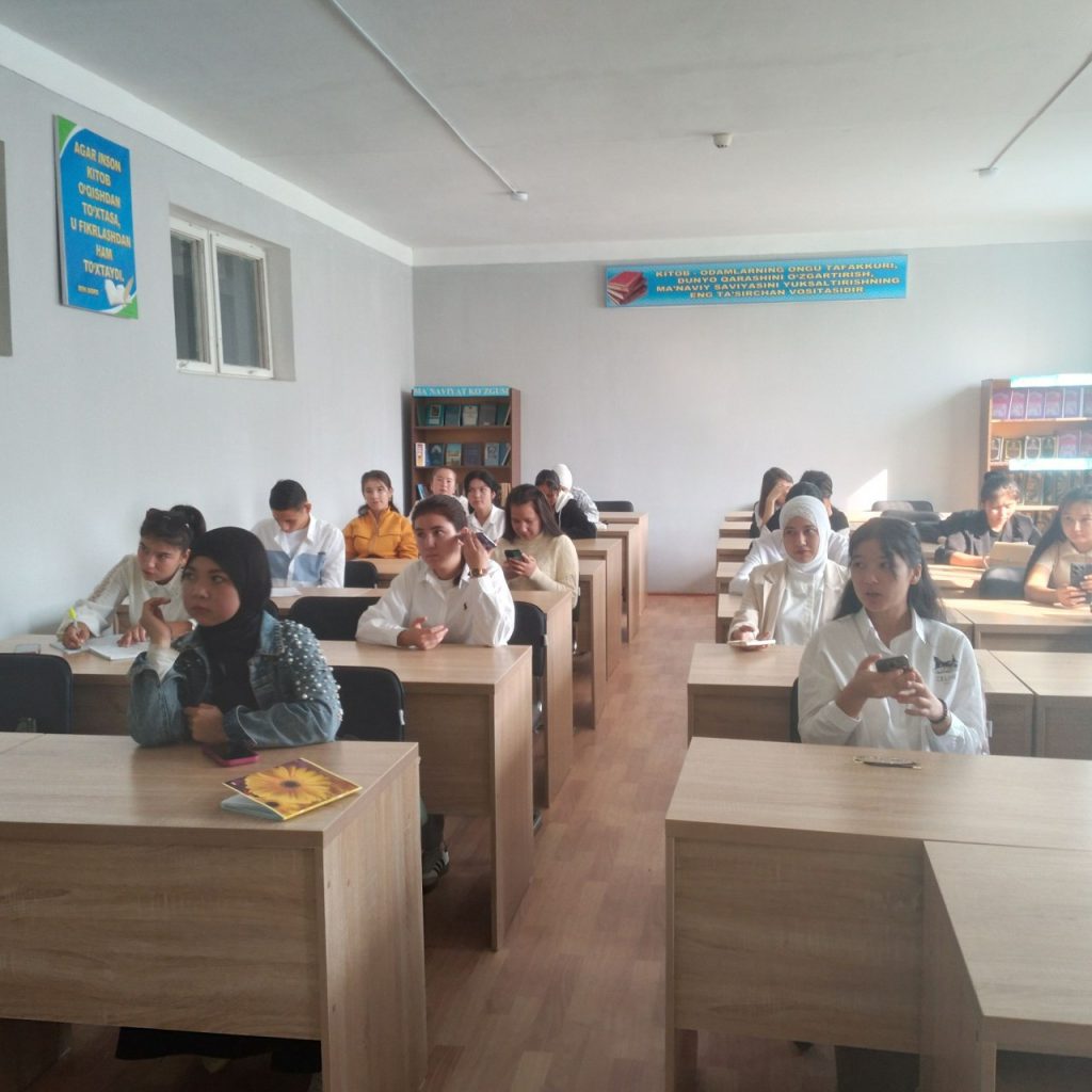 Joriy yilning 7-oktabr kuni Oqqo’rg’on tuman 1-son kasb-hunar maktabi Axborot–resurs markazining o’quv zalida Buyuk qomusiy olim va mashhur davlat arbobi Murzo Ulug’bek tavalludining 630-yilligi munosabati bilan, YOIBDO’ U.Yusupova hamda ARM hodimlari boshchiligida 2-bosqich 23-38-guruh o’quvchilari o’rtasida davra suhbati bo’lib o’tdi.