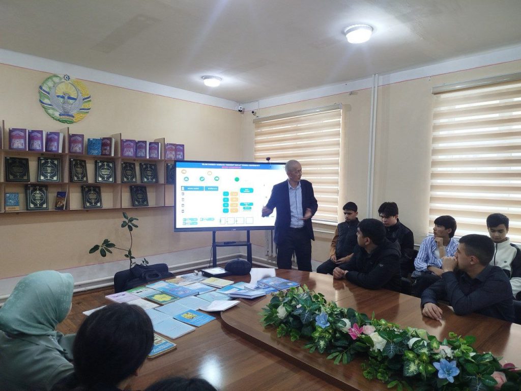 Tashrif jarayonida Q.S.Ayubov «Raqamli elektronikaning ahamiyati» mavzusida master-klass o`tkazdi.