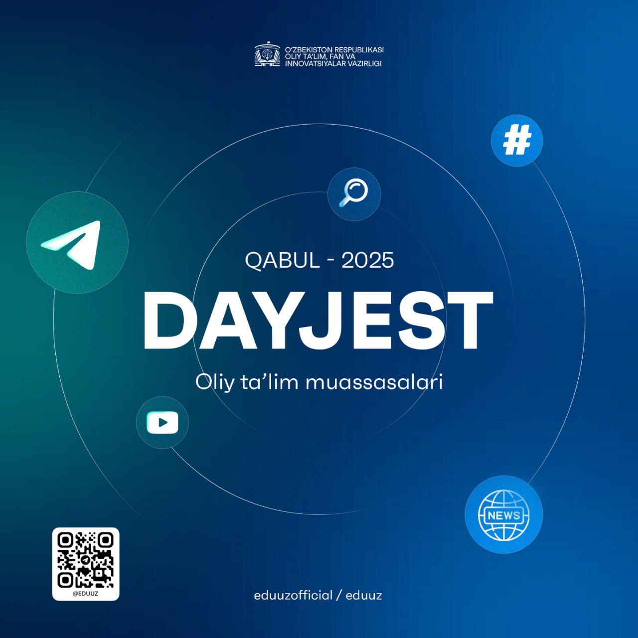 Eslatib o‘tamiz, oliy va professional ta’lim muassasalariga kirish test sinovlarida ishtirok etgan abituriyentlar 8-avgustga qadar oliy ta’lim muassasasi, ta’lim yo‘nalishi va ta’lim shaklini tanlashlari mumkin.