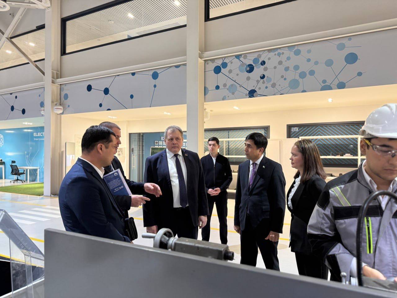 Belarus Respublikasi ta’lim vazirining birinchi o‘rinbosari Aleksandr Baxanovich Inno texnopark bosh direktori Mansur Sultonov va institutning o’quv ishlari bo’yicha direktor o’rinbosari Qahramon Olimov ishtirokida Texnopark bazasidagi zamonaviy dastgoxlarga ega bo‘lgan o‘quv ustaxonasida “Mashinasozlik texnologiyasi” ta’lim yo‘nalishi 1 kurs talabalariga dual ta’lim shaklida olib borilayotgan o‘quv amaliyoti, shuningdek “Metrologiya, standartlashtirish va sifat nazorati” hamda “Biotibbiyot muhandisligi” ta’lim yo‘nalishlari 4 kurs talabalariga mutaxassislik fanlaridan o’tkazilayotgan amaliy va laboratoriya mashg‘ulotlar jarayoni bilan tanishdi.