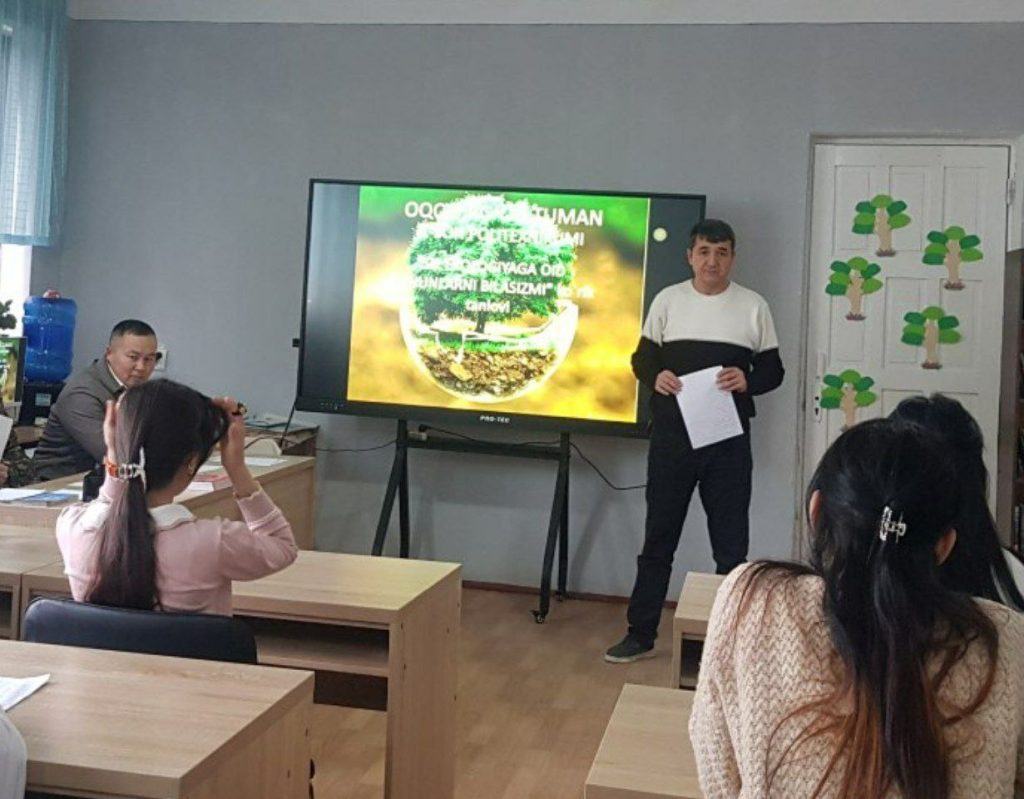 Joriy yilning 28-yanvar kuni Oqqo’rg’on tuman 1-son politexnikumida Oqqo’rg’on tuman 1-son hamda 2-son politexnikumi o’quvchilari o’rtasida “Siz ekologiyaga oid qonunlarni bilasizmi?” respublika ko‘rik-tanlovining ta’lim muassasalari o’rtasida 2-bosqichi bo’lib o’tdi.