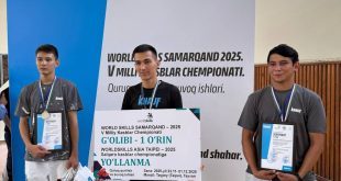 WorldSkills Samarkand – 2025 V Milliy ishchi kasblar chempionati yopilish marosimi Chempionat yakunida g‘olib va sovrindorlar e’lon qilindi: 1-o‘rin – Nusratov Sobirjon Istam o‘g‘li (Buxoro viloyati, Buxoro transport va qurilish texnologiyasi texnikumi) – 764 ball ➡️ WorldSkills Asia Taipei – 2025 xalqaro chempionatiga yo‘llanma sohibi! 2-o‘rin – Ilyas Eldos Adiluly (Qozog‘iston, Olmata qurilish va texnika kolleji) – 721 ball 3-o‘rin …