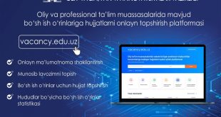 Vakant direktor lavozimlari uchun ochiq mustaqil tanlov Oliy ta’lim, fan va innovatsiyalar vazirligi tasarrufidagi 51 ta texnikumning vakant direktor lavozimi uchun ochiq mustaqil tanlov e’lon qiladi. Vakant direktor lavozimlari ro‘yxati bu yerda (https://gov.uz/oz/edu/news/view/41908) Talabgorlar tomonidan arizalarni yuborish https://vacancy.edu.uz/ sayti orqali amalga oshiriladi. Hujjatlar 2025-yil 3-apreliga qadar (shu kuni ham) qabul qilinadi. Oliy ta’lim, fan va innovatsiyalar vazirligi tasarrufidagi Toshkent viloyati …