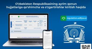 Batafsil2 ta qonunga oʻzgartirish va qoʻshimchalar kiritish bo‘yicha loyiha regulation.adliya.uz platformasiga muhokama uchun joylandi