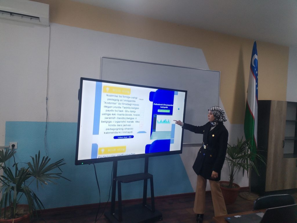 Seminarda ishtiriqchilarni Prof-emis.edu.uz platformasi orqali elektron jurnal to’ldirish bo’yicha qoidalari bilan tanishtirilib, o’zlarini bilimlarini mustahkamladilar hamda o’zaro tajribalar bilan almashdilar.