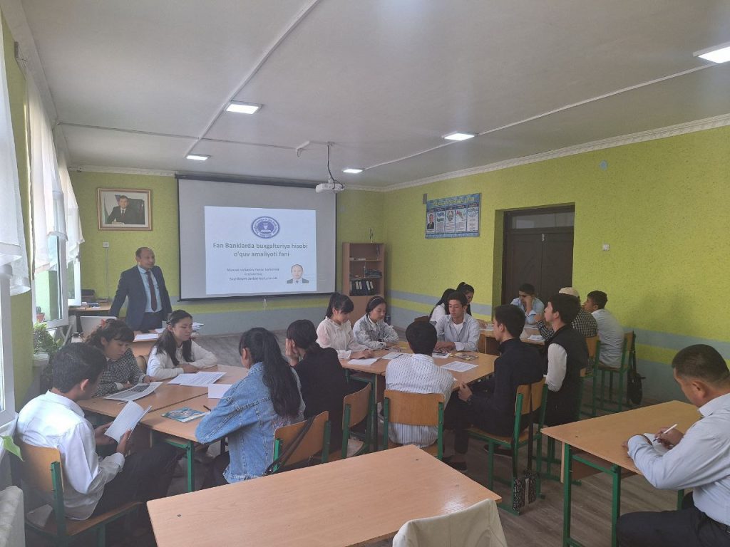 Yangiyo’l tuman 2-son kasb-hunar maktabida 2024-yil 3-oktyabr kuni 31-23 guruhida “Banklarda buxgalteriya hisobi o’quv amaliyoti” fanidan «Banklararo hisob-kitoblarning tashkil etilishi va hisobi» mavzusida o`qituvchi J.Baisboyev tomonidan o’quvchilarga «Ochiq dars» o’tkazildi.