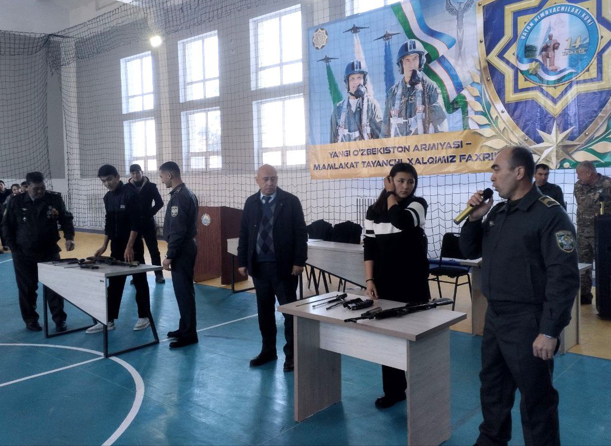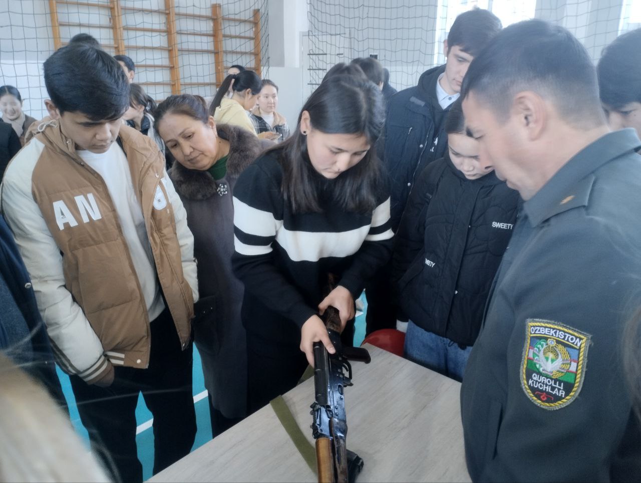 Tadbirda 77692-harbiy qism ofiser va serjantlari ishtirokida o‘quvchilar bilan Kalashnikov avtomatining vazifasi, umumiy tuzilishi, ishlash tamoyili va jangovar xusisiyatlari bo‘yicha amaliy mashg‘ulotlar o‘tilib, qo‘rollarni noto‘liq qismlarga ajratish va yig‘ish mashqlari bo‘yicha musobaqa tashkillashtirildi.