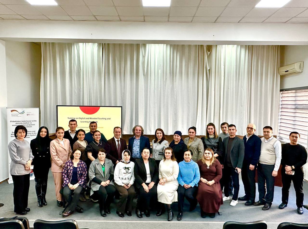 2025 yilning 20-24-yanvar kunlari Toshkent dizayner va texnologlarni tayyorlash texnikumida GIZning «O’zbekiston kasb-hunar ta’lim tizimida islohot va modernizatsiya jarayonini qo’llab — quvvatlash (TexVET) » loyihasi doirasida O‘zbekistonning to‘qimachilik sohasi uchun kasbiy ta’lim tashkiloti rahbarlari va o‘qituvchilari o‘z ta’lim muassasalariga raqamli va aralash o‘qitish usullarini joriy etishga qaratilgan 5- kunlik seminar-treningi bo‘lib o‘tmoqda.