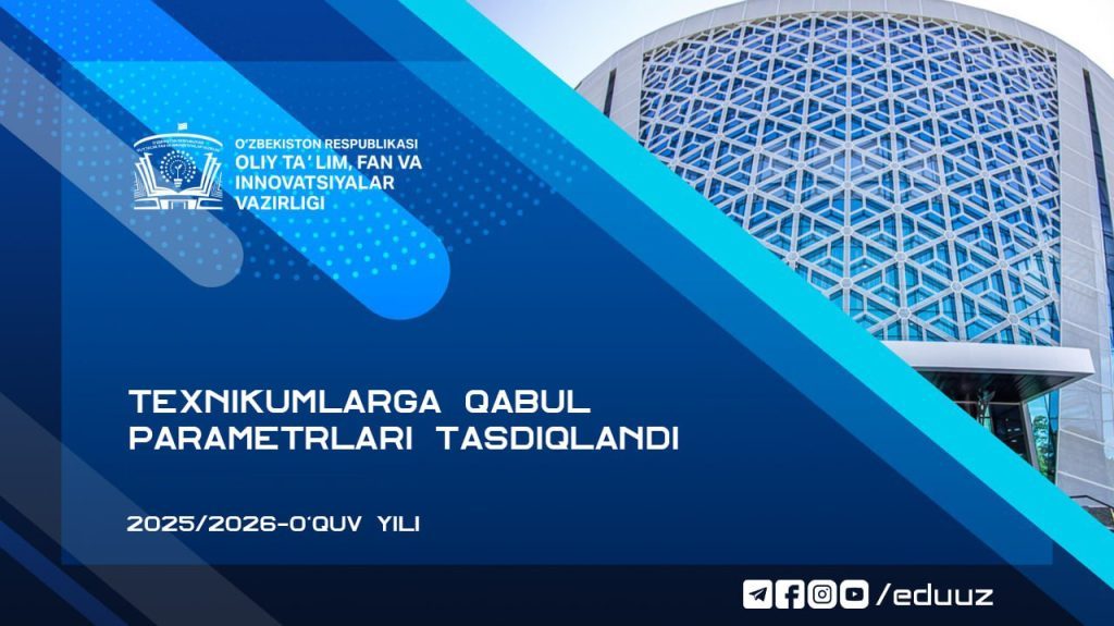 Qabul parametrlarida 9-sinf bitiruvchilari uchun 515 ta texnikumga jami 139 245 ta kvota (to‘liq davlat granti), 11-sinf bitiruvchilari uchun esa 549 ta texnikumga jami 171 764 ta kvota (shundan 66 484 ta grant) ajratilgan.