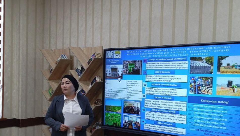 Joriy yilning 9-aprel kuni Toshkent viloyati Oliy ta’lim, fan va innovatsiyalar boshqarmasida boshqarma boshlig‘i N.Kulbekova rahbarligida kasbiy ta’lim muassasalari direktorlarining navbatdagi taqdimoti o‘tkazildi. Tadbirda bino va yer maydonlaridan foydalanish, obodonlashtirish ishlari hamda budjetdan tashqari mablag‘larni jalb etish masalalari atroflicha muhokama qilindi.