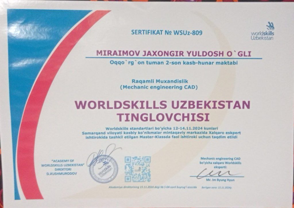 Samarqand KOICAda Mechanical engineering CAD kasbi bo’yicha Master- Klassda Oqqo’rg’on tuman 2-son kasb-hunar maktabining ta’lim ustasi Jahongir Mirrayimov faol ishtirok etdi.