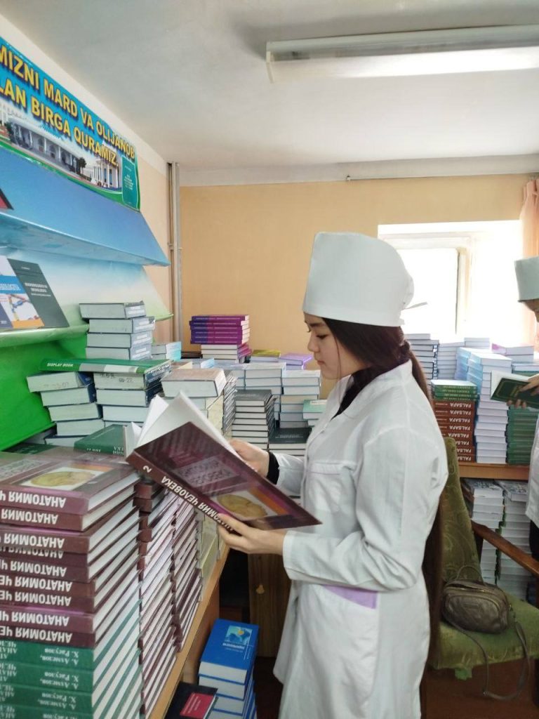 Toshkent tibbiyot akademiyasi Chirchiq filiali talaba-yoshlariga kitobxonlik madaniyatini singdirish, ularning badiiy savodxonligini oshirish maqsadida Yoshlar masalalari va maʼnaviy-maʼrifiy ishlar boyicha direktor birinchi oʻrinbosari B.Boboyorov talabalar bilan birgalikda kutubxonaga keltirilgan yangi ilmiy va badiiy adabiyotlar bilan yaqindan tanishdi.
