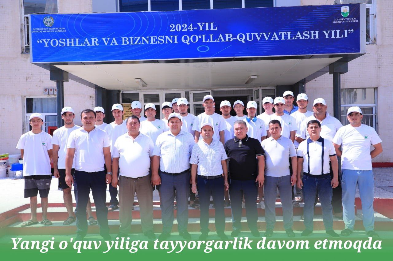 Toshkent davlat agrar universitetida yangi o’quv yiliga tayyorgarlik ko’rish maqsadida kóngilli talabalardan iborat quilish otryadi tuzilib, talabalar turar joylari hamda o’quv binolarini joriy ta’mirlash ishlari amalga oshirilmoqda.