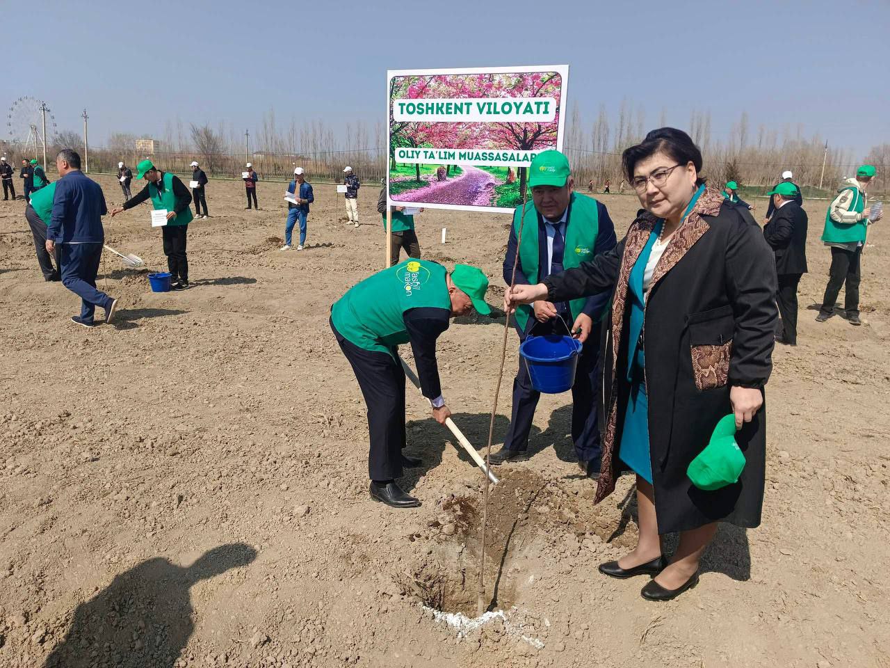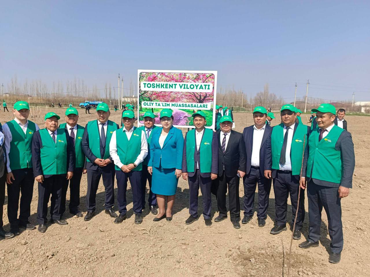 Bahorning ilk kunlarida keng miqyosda ko‘chat ekish marafoni va turli ekotashabbuslar bilan davom etayotgan ushbu loyihada Toshkent viloyati Oliy taʼlim, fan va innovatsiyalar boshqarmasi boshligʻi N.Kulbekova hamda Toshkent viloyati oliy taʼlim muassasalari rektorlari ham ishtirok etdilar.