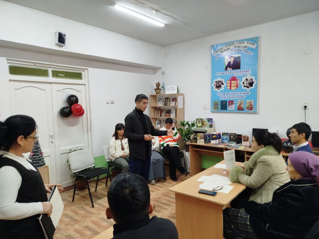 Joriy yilning19-dekabr kuni Chinoz tumani 2-son kasb-hunar maktabi kutubxonasida o’quvchi yoshlar o’rtasida kitobxonlikni keng targ’ib qilish maqsadida «Yosh kitobxon» tanlovini saralash bosqichi bo’lib o’tdi.