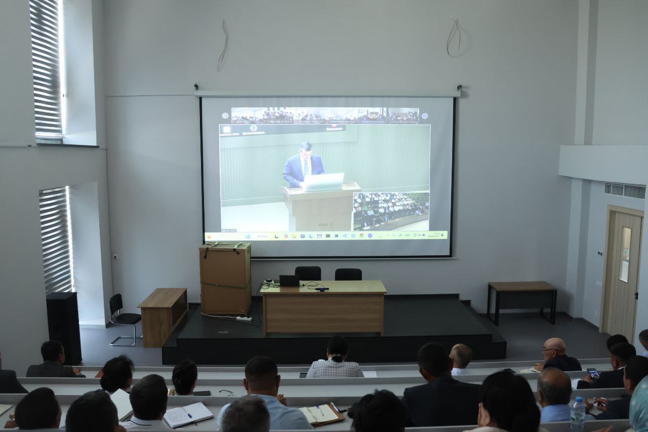 Ushbu tadbirda viloyatdagi kasbiy ta’lim muassasalari direktorlarining ham ishtiroki ta’minlandi. Ular viloyat Oliy ta’lim, fan va innovatsiyalar boshqarmasi boshlig‘i N. Kulbekova rahbarligida viloyat studiyasi orqali masofaviy tarzda qatnashdilar.