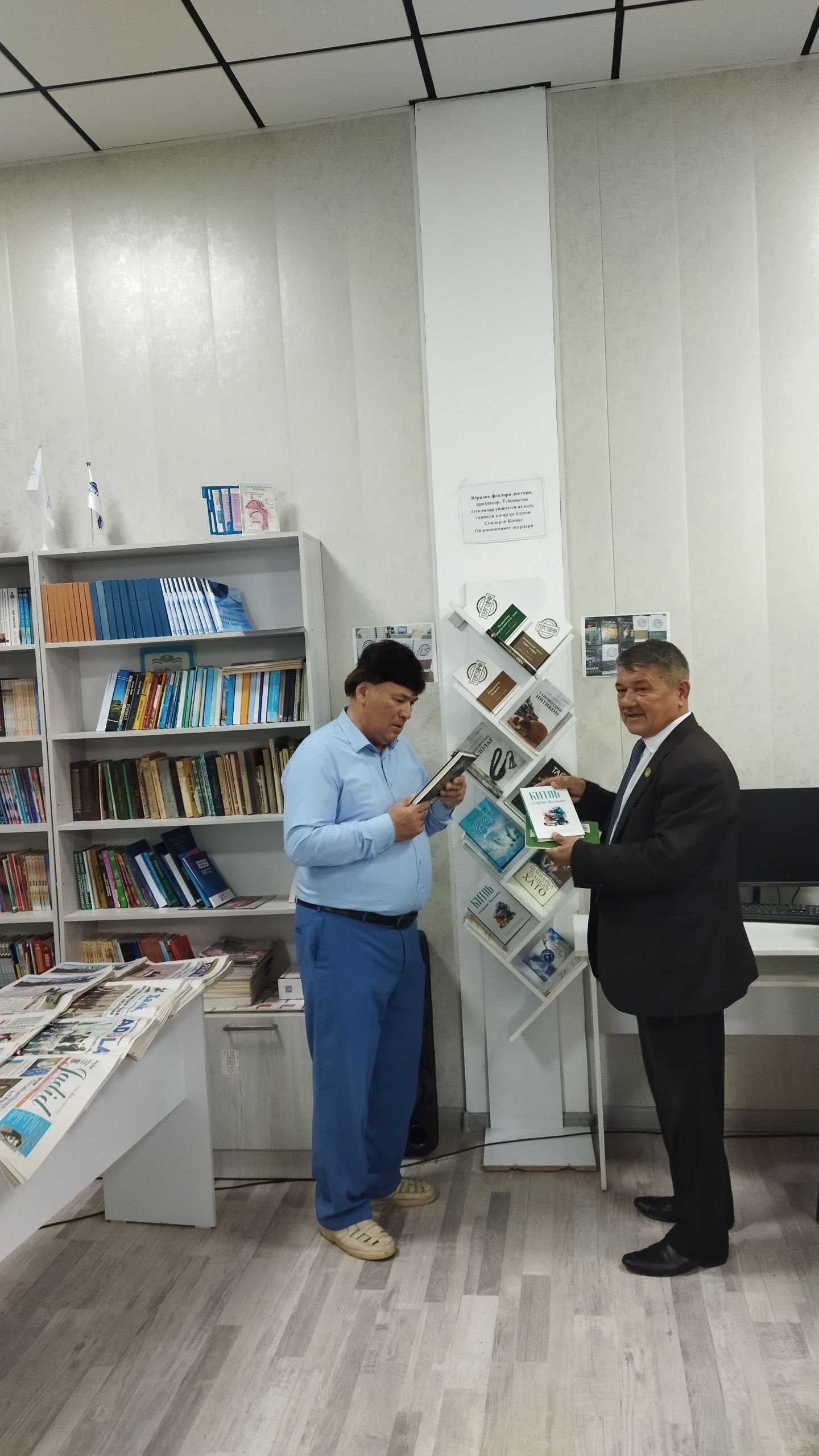 Ангрен университеда «Ўзбекистон — китобхонлар юрти» шиори остида V Республика «Китобхонлик ҳафталиги» ўтказилаётганлиги муносабати билан 2025 йилнинг 23 апрель куни “Юридик фанлари доктори, профессор, Ўзбекистон ёзувчилар уюшмаси аъзоси, таниқли шоир ва ёзувчи Синдаров Комил Ойдиновичнинг асарлари” номли китоб кўргазмаси ҳамда «Жаҳолатга қарши маърифат» мавзусида суҳбат ўтказилди.